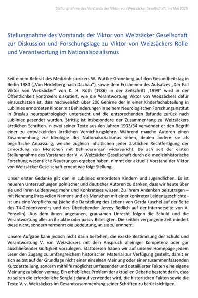 Stellungnahme des Vorstands der VvWG zur NS-Zeit viktor von Weizsäckers, Mai 2023