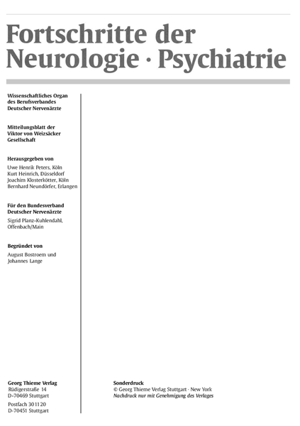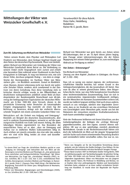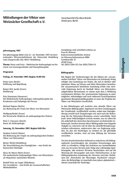 Die Mitteilungen der Viktor von Weizsäcker Gesellschaft erscheinen seit 1997 als eigenständige Rubrik in der Zeitschrift "Fortschritte der Neurologie, Psychiatrie" im Georg Thieme Verlag Stuttgart.